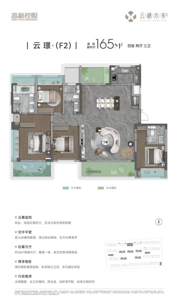 从力户型为建面125-165㎡四房